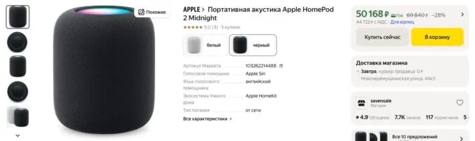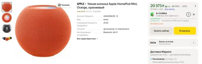Крошечный шар, который звучит намного взрослее, чем выглядит. HomePod Mini — не просто очередная колонка, а центр умного дома с поддержкой Thread и Matter. Она выдает честный 360-градусный звук и умеет перехватывать музыку с вашего iPhone. Достаточно просто поднести его поближе к динамику. Да, с Алисой девайс не дружит, но для максимально качественного звука и бесшовной работы с iPhone, iPad, Mac ничего лучше за такие деньги вы не найдете.