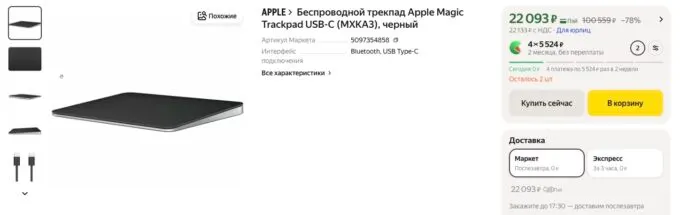 Работать с Magic Trackpad в монтажных программах или браузерах в разы быстрее, чем с любой мышкой: свайпы, зумы и переключения между рабочими столами становятся интуитивными движениями пальцев. Заряжается гаджет через USB-C, а батареи хватает на полтора месяца активного использования. Плюс на выбор доступны два цвета, но чёрный матовый выглядит на столе просто потрясающе.