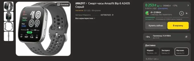 Схожий по концепции девайс, но с большим уклоном в спорт. Amazfit Bip 6 предлагают ультимативную функциональность за каждый вложенный рубль. Модель получила огромный 1,97-дюймовый AMOLED-дисплей с яркостью до 2000 нит и металлический корпус. Главная фича девайса — 140 режимов тренировок, включая HYROX и силовые занятия с автоматическим подсчётом подходов. Ещё и полноценная поддержка офлайн-карт для навигации тут предусмотрена.