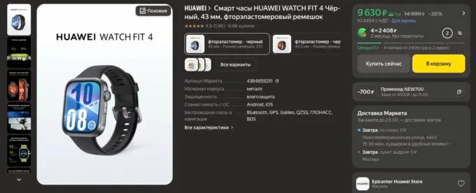 Если первые поколения больше походили на фитнес-браслеты с расширенным набором функций, то сегодняшние Huawei Watch Fit 4 выглядят максимально дорого. По дизайну у них паритет с Apple Watch, но стоят они в 4 раза меньше. Главное здесь — экран. Это сочный 1,82-дюймовый AMOLED с рекордной пиковой яркостью в 2000 нит. Даже под прямыми солнечными лучами картинка остается идеально чёткой, а автоматическая регулировка яркости работает быстрее, чем на многих смартфонах. Часы весят всего 26 граммов и практически не ощущаются на руке, что критично для тех, кто не снимает гаджет даже во время сна.