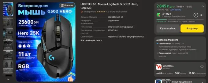 Сейчас лучшую игровую мышь Logitech G502 Hero можно урвать на Яндекс Маркете всего за 2845 рублей. А с кэшбеком некоторых банков её можно забрать ещё дешевле.