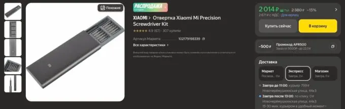Прямо сейчас лучший набор отверток Xiaomi Mi Precision Screwdriver Kit можно урвать на Яндекс Маркете всего за 2014 рублей. А с кэшбеком некоторых банков вы сэкономите ещё пару сотен рублей.