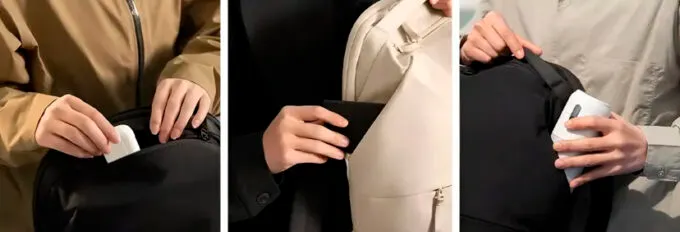 Жирнейший плюс Xiaomi Mijia Commuting Backpack — грамотное разделение внутреннего пространства. Основной отсек вмещает ноутбук с диагональю до 16 дюймов. Под него выделена мягкая защитная секция. Также Xiaomi добавила множество мелких карманов для пауэрбанка, мышки, ключей и канцелярии, бутылки воды и зонта, чтобы в вещах всегда был порядок. Ещё тут спинка обтянута дышащим сетчатым материалом, а S-образные лямки распределяют нагрузку так, что плечи не устают даже к концу дня. Для любителей путешествовать на спинке есть специальный ремень для крепления на ручку чемодана — незаменимая вещь в командировках.