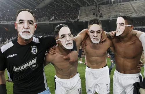 Фанаты ПАОКа надели маски русского бизнесмена Саввиди, выбежавшего с пистолетом во время футбола В Греции просто замечательно! Фанаты местного клуба ПАОК, который возглавляет опальный русский олигарх Иван Саввиди, поддержали своего босса после победы в кубке. Андрей Ставицкий