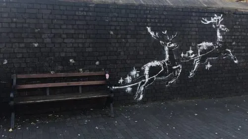 Бэнкси изобразил Санту в роли бомжа. Но главное – реакция прохожих на перформанс художника Что там? Подсказка: огромный пузатый мужик с бородой. Виталий Халюков