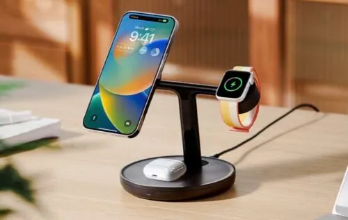 Это самая монструозная беспроводная зарядка для iPhone. Она двухэтажная Альтернатива четырем зарядным проводам. Андрей Ставицкий